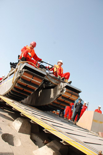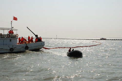 5月13日,大港油田灘海開發(fā)公司首次應用自備應急設(shè)備,組織開展溢油應急演習。演習假設(shè)灘海油田當天發(fā)生海上溢油,公司立即啟動應急預案,設(shè)置圍油欄,組織溢油回收布控。公司自備的收油設(shè)備,毛刷式收油機、輪鼓式收油機、巖石收油機、真空吸油機、兩棲船,紛紛下海各顯神通。