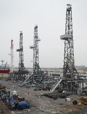 宏華石油設(shè)備有限公司在四川廣漢的鉆井生產(chǎn)基地(5月20日攝)。