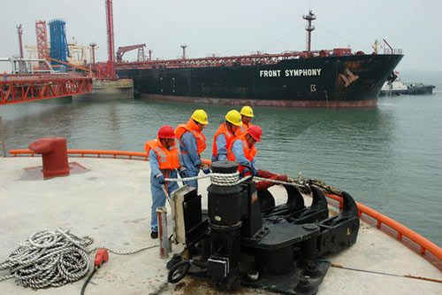 該碼頭是我國最大的原油接卸碼頭,可滿足目前國內(nèi)外最大原油船舶全天候靠泊作業(yè)。目前,全球投入使用的VLCC油輪有191艘。世界上只有10個國家具備接卸這種超級油輪的能力,除了美國和日本外,其余的都為中東的產(chǎn)油國。大連港新30萬噸級原油碼頭的投入使用,將填補我國接卸VLCC超級油輪的空白。