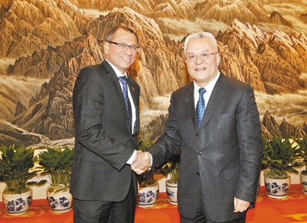 圖為中國(guó)石油集團(tuán)董事長(zhǎng)周吉平會(huì)見(jiàn)厄瓜多爾副總統(tǒng)格拉斯
