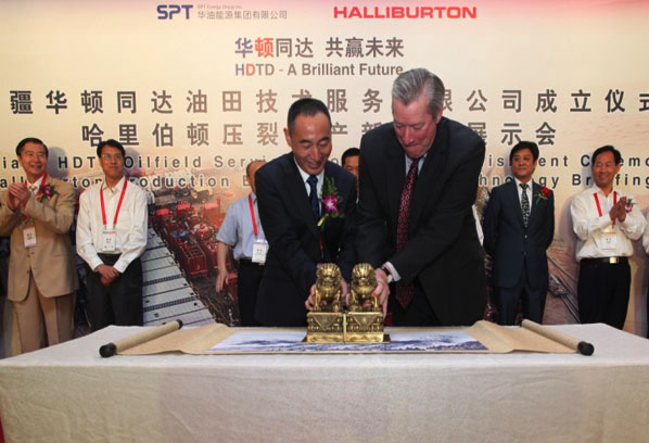 2014年7月9日,哈里伯頓公司宣布與華油能源集團(tuán)旗下新疆華油油氣工程有限公司已簽署協(xié)議,在新疆成立專注于壓裂和增產(chǎn)的合資公司——華頓同達(dá)。華頓同達(dá)是哈里伯頓公司在中國成立的第一個壓裂增產(chǎn)合資公司,它將在新疆維吾爾族自治區(qū)提供壓裂增產(chǎn)服務(wù),包括壓裂設(shè)計和分析、數(shù)據(jù)采集、高壓泵和化學(xué)品等服務(wù)。
