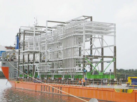 11月14日,馬來西亞惠斯通LNG模塊預制項目第一個模塊101CA模塊順利登船。經(jīng)過5個月狹小空間內(nèi)鋼結構、設備、配管、儀表電器等專業(yè)的交叉施工,項目滿足了業(yè)主澳大利亞雪佛龍公司和總包方美國柏克德公司要求,順利轉交。
