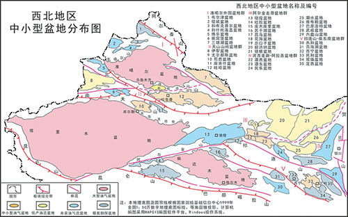 位于賀蘭山以西,昆侖山-巴顏喀拉山以北的我國西北地區(qū),是油氣資源實(shí)現(xiàn)戰(zhàn)略接替的地區(qū)。除發(fā)育的塔里木、準(zhǔn)噶爾和柴達(dá)木3個(gè)大型含油氣盆地外,還有眾多的中小型盆地。