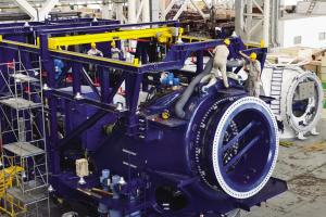 直徑153米海上風(fēng)電巨無霸——太重(天津)濱海重型機(jī)械有限公司首臺(tái)海上5兆瓦風(fēng)電機(jī)組日前在臨港經(jīng)濟(jì)區(qū)出廠。這臺(tái)被譽(yù)為國(guó)內(nèi)最先進(jìn)的海上風(fēng)電機(jī)組裝船后向福建福清興化灣海域發(fā)運(yùn)。