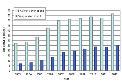 A report issued by Douglas-Westwood Ltd. in 2Q 2008 says deepwater spending is on the rise and that nearly US $60 billion will be spent on deepwater drilling in 2012.