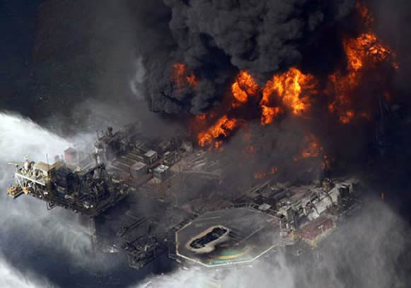 近期發(fā)生的墨西哥灣深水鉆井平臺(tái)火災(zāi)事件。大火持續(xù)兩天后,平臺(tái)沉沒在墨西哥灣5000英尺的深水下。目前仍有11人失蹤,生還的可能性微乎其微。