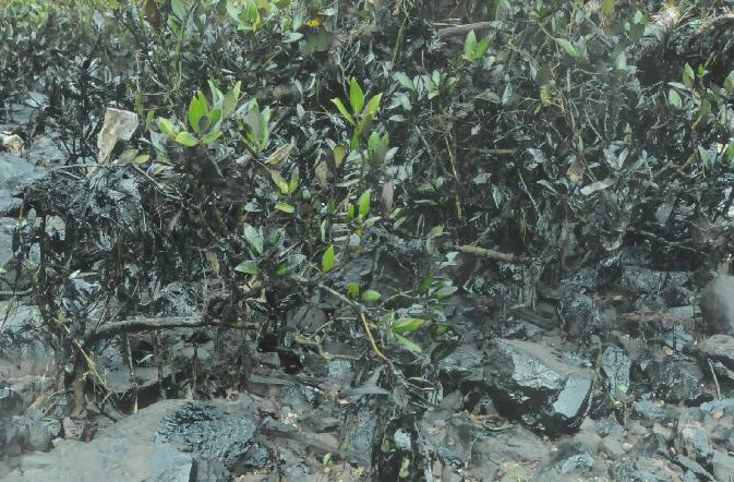 這是8月10日在印度孟買北部拍攝的受到漏油污染的卡爾海岸的紅樹林。一艘貨船4日在孟買附近海域沉沒,船上所載燃油泄漏,污染了周圍海域和多處海灘,沿海生態(tài)環(huán)境遭到破壞。