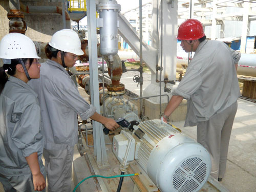 圖為,該公司員工正在PX裝置區(qū)進(jìn)行電機(jī)單機(jī)試運(yùn)。