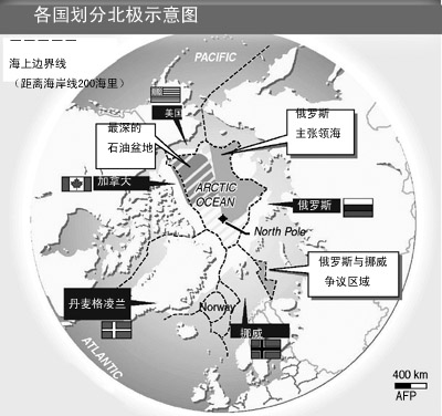 2007年,俄聯(lián)邦自然資源部宣布,通過(guò)對(duì)北冰洋海底土壤樣品的分析,證實(shí)北極圈內(nèi)羅蒙諾索夫海嶺和門(mén)捷列夫海嶺是俄聯(lián)邦大陸架的延伸。