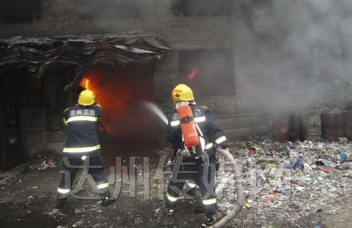 只見該煉油廠背靠一座小山,其對面約20米左右為居民房,緊靠其右側(cè)10米左右為煉鋼廠、木材加工廠,就在距起火點不足40米處還堆放著大量木料,煉油廠內(nèi)有兩個煉油罐、一個儲油罐、幾十個容量為100L裝滿柴油的油桶正被烈焰包圍。其中,兩個煉油罐中共有800公斤柴油,儲油罐中約有300公斤柴油,加上油桶內(nèi)的柴油,總重量超過兩噸。消防戰(zhàn)士撲明火的同時對兩個煉油罐進行冷卻,并頂著酷熱進入火場,對火災(zāi)內(nèi)部各個擊破,經(jīng)過近一個小時的戰(zhàn)斗,油庫內(nèi)部明火被撲滅。