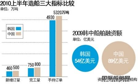 據(jù)韓國(guó)《朝鮮日?qǐng)?bào)》報(bào)道,連續(xù)7年穩(wěn)坐世界第一寶座的韓國(guó)造船業(yè)今年上半年被中國(guó)超越。從中國(guó)造船業(yè)的增長(zhǎng)勢(shì)頭來(lái)看,在今年的總成績(jī)上韓國(guó)也很有可能被中國(guó)拋在后面。中國(guó)有超過(guò)兩萬(wàn)億美元的外匯儲(chǔ)備為基礎(chǔ)提供船舶融資,從而爭(zhēng)取到海外訂單,“金錢(qián)的力量”成為中國(guó)造船業(yè)背后的巨大靠山。
