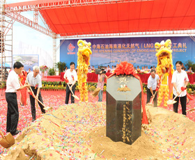 8月2日,中海油海南液化天然氣項目在海南洋浦經(jīng)濟開發(fā)區(qū)正式動工。項目總投資65億元,建設規(guī)模為300萬噸/年,預計2014年8月建成投產(chǎn)。