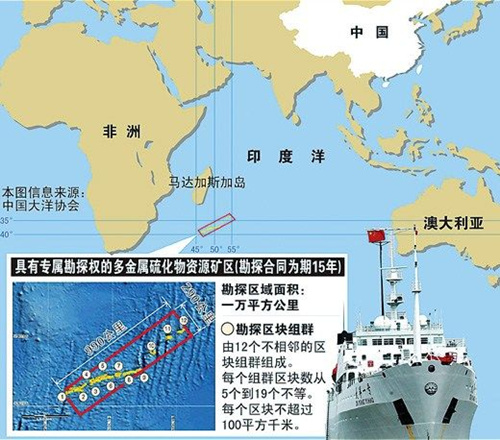 8月2日,在歷時(shí)一年多的申請(qǐng)和核準(zhǔn)之后,中國(guó)大洋協(xié)會(huì)提出的多金屬硫化物礦區(qū)申請(qǐng)得到了國(guó)際海底管理局理事會(huì)的批準(zhǔn)。這標(biāo)志我國(guó)在西南印度洋國(guó)際海底區(qū)域獲得了1萬(wàn)平方公里具有專屬勘探權(quán)的多金屬硫化物資源礦區(qū),并在未來(lái)開(kāi)發(fā)該資源時(shí)享有優(yōu)先開(kāi)采權(quán)。