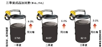 國家發(fā)改委昨日披露數(shù)據(jù)稱,今年以來,國內(nèi)石油行業(yè)生產(chǎn)經(jīng)營總體向好,市場供需整體平穩(wěn)。原油生產(chǎn)累計15183萬噸,同比增長1.6%,而成品油消費前9個月達18043萬噸,前三月增幅逐漸收窄。