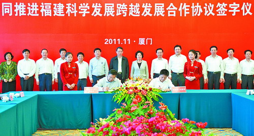 11月3日,中國(guó)石油天然氣集團(tuán)公司與福建省人民政府在廈門(mén)簽訂共同推進(jìn)福建科學(xué)發(fā)展跨越發(fā)展合作協(xié)議。