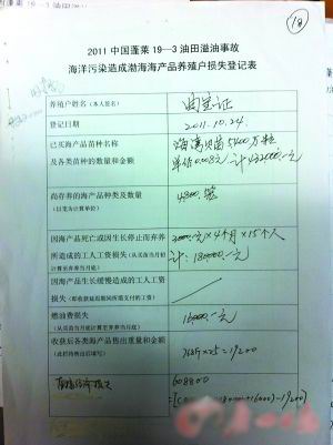 據(jù)律師賈方義介紹,今年6月4日,渤海灣蓬萊19-3油田發(fā)生溢油;7月5日國家海洋局公布蓬萊19-3附近海域劣四類海水水質(zhì)840平方公里、海水油濃度超過背景值40倍,最高濃度達到歷史背景值的86.4倍;9月15日,康菲公布的溢油總量為3320桶;11月11日,國家海洋局公布污染海洋面積達6200平方公里。賈方義說,溢油事故造成渤海海水質(zhì)量急劇下降、大量微生物及浮游生物死亡,導(dǎo)致包括本案30名原告在內(nèi)的渤海灣養(yǎng)殖戶的扇貝等大量海產(chǎn)品死亡、部分生長停滯、部分生長緩慢。“要求賠償2000萬元我們是經(jīng)過嚴格計算的,主要包括養(yǎng)殖戶購買扇貝苗、人工、油費等各項支出等直接經(jīng)濟損失以及假如沒有受災(zāi)正常出售的可期收益。”