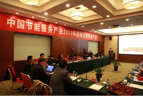 2011年12月15日,“‘中國(guó)節(jié)能服務(wù)產(chǎn)業(yè)2011年度峰會(huì)’新聞通氣會(huì)”在北京中環(huán)假日酒店召開(kāi)。國(guó)家發(fā)展和改革委員會(huì)能源研究所副所長(zhǎng)、研究員,本次“2011年度峰會(huì)”大會(huì)主席戴彥德、中國(guó)節(jié)能協(xié)會(huì)節(jié)能服務(wù)產(chǎn)業(yè)委員會(huì)(EMCA)主任吳道洪、EMCA副主任兼秘書長(zhǎng)趙明、EMCA副主任胡杰以及全國(guó)各媒體代表出席會(huì)議。會(huì)上,嘉賓就中國(guó)節(jié)能服務(wù)產(chǎn)業(yè)發(fā)展形勢(shì)、“2011年度峰會(huì)”以及EMCA與2011產(chǎn)業(yè)發(fā)展情況等問(wèn)題發(fā)表講話。
