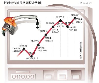 去年,國內成品油價格僅調整了3次,汽、柴油價格兩升一降,累計每噸提高550元和450元,提價幅度分別為6.4%和5.8%。目前國內成品油價格對應的國際市場