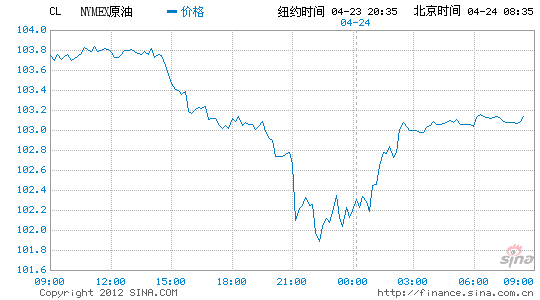 當(dāng)日,紐約商業(yè)交易所(NYMEX)6月份交割的輕質(zhì)原油期貨價(jià)格下跌77美分,報(bào)收于每桶103.31美元,跌幅為0.7%。