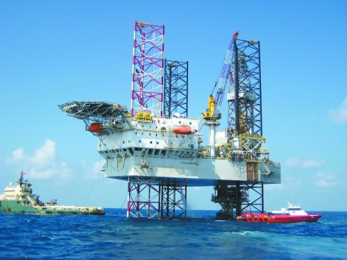 自升式平臺(tái):通常在100m水深左右或以下的區(qū)域作業(yè),先拖航到位后,通過(guò)升降機(jī)構(gòu)將樁腿往海底里插,最后將平臺(tái)升離海面,然后再壓載,等其穩(wěn)定后。
