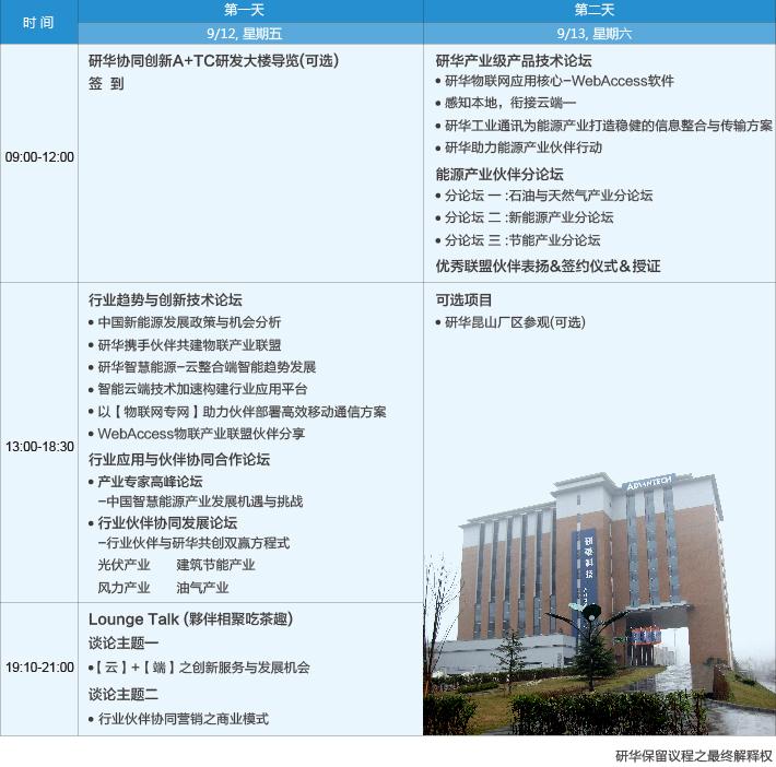 研華科技—2014年9月12日-13日,全球領(lǐng)導(dǎo)品牌研華科技與業(yè)界先進(jìn)將于昆山(研華協(xié)同創(chuàng)新研發(fā)中心A+TC暨智慧城市與物聯(lián)網(wǎng)應(yīng)用展示中心)共同舉辦“研華『云』+『端』能源高峰論壇”,會議以“新能源、油氣與節(jié)能物聯(lián)產(chǎn)業(yè)開發(fā)新契機(jī)”為主題,我們期盼通過此次會議,與您一同探討物聯(lián)網(wǎng)產(chǎn)業(yè)中【云】+【端】技術(shù)對能源產(chǎn)業(yè)的發(fā)展與挑戰(zhàn)。