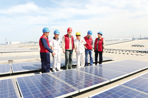在位于開發(fā)區(qū)西區(qū)的長(zhǎng)城汽車[-0.22% 資金 研報(bào)]天津產(chǎn)業(yè)園內(nèi),記者看到偌大的廠房屋頂上整齊排列著一塊塊長(zhǎng)約3.5米、寬約1米的深藍(lán)色太陽(yáng)能光伏板,一眼望去顯得十分壯觀。這些作為光伏電站“駐扎地”的廠房屋頂都具有約5%的坡度,每一塊太陽(yáng)能光伏板都是通過支架牢牢地“釘”在彩鋼屋頂上,十分結(jié)實(shí)。據(jù)了解,長(zhǎng)城汽車天津產(chǎn)業(yè)園占地面積約為5000畝,共有6個(gè)廠區(qū),此次工程利用其中四個(gè)廠區(qū)內(nèi)13座建筑閑置屋頂設(shè)置光伏電站,鋪設(shè)多晶硅光伏板共計(jì)81740塊,裝機(jī)總?cè)萘窟_(dá)到了20兆瓦,是目前天津市裝機(jī)容量最大的光伏電站。根據(jù)總裝機(jī)容量、傾斜面輻照量、系統(tǒng)效率等計(jì)算出光伏電站25年發(fā)電量綜合46054.3萬(wàn)千瓦時(shí),年平均發(fā)電量為1842.17萬(wàn)千瓦時(shí),峰值日照時(shí)數(shù)為920小時(shí)。電站建成后,每年可以提供清潔電力1842.17萬(wàn)千瓦時(shí),與燃煤電廠相比,按平均供電煤耗360克/千瓦時(shí)計(jì)算,每年可以節(jié)約標(biāo)準(zhǔn)煤6719噸,相應(yīng)每年可減少多種大氣污染物的排放,其中減少二氧化硫排放量約121.2噸,氮氧化物60.3噸,二氧化碳1.7885噸,煙塵33.2噸。具有良好的節(jié)能效益、環(huán)境效益和社會(huì)效益。
