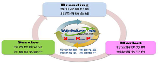 研華將構(gòu)建以WebAccess為核心,垂直市場應(yīng)用為導(dǎo)向、云端服務(wù)加值的系統(tǒng)軟件平臺,并成為聯(lián)盟共同的合作機制。在品牌營銷方面,研華將 結(jié)合垂直市場項目集成商與系統(tǒng)組件合作伙伴,發(fā)展行業(yè)解決方案打包,通過發(fā)展WA+聯(lián)盟市場營銷平臺,共同推廣到中國市場。此外,研華還將為WA+聯(lián)盟伙 伴提供技術(shù)培訓(xùn)及認(rèn)證等加值服務(wù)。