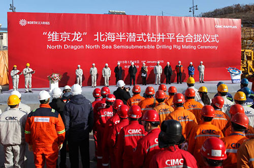 中集來福士為一家挪威公司建造的半潛式鉆井平臺“維京龍”上下船體,19日在煙臺成功合攏。“維京龍”是中國建造的第一座可在北極海域作業(yè)的半潛式鉆井平臺。