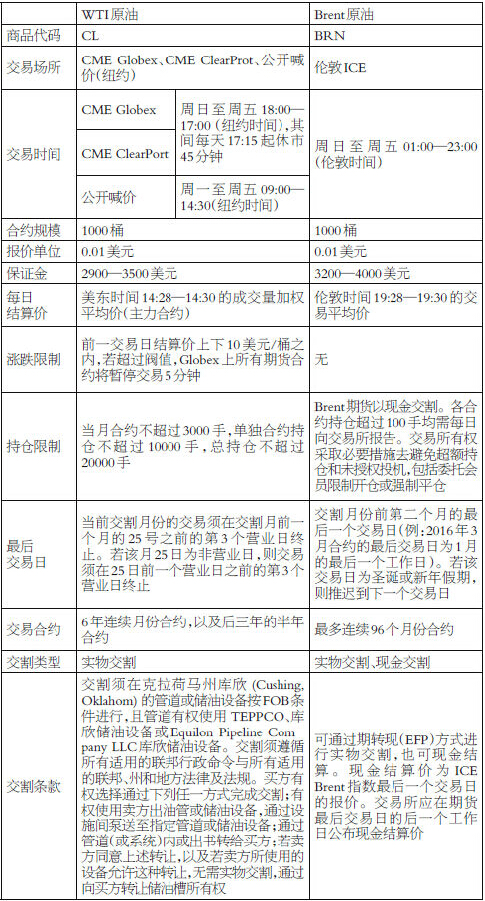 此外,全球各地分布著大量石油交易所交易著不同品級(jí)的石油期貨,但最有影響力的當(dāng)屬在ICE交易的北海布倫特(Brent)原油與NYMEX交易的西德克薩斯輕質(zhì)原油(WTI)。據(jù)統(tǒng)計(jì),每天在ICE與NYMEX交易的原油總量達(dá)到了近10億桶,超過(guò)了全球每日原油需求量的10倍。因此,這兩個(gè)交易所的原油合約能夠很好地反映市場(chǎng)價(jià)格變化;并且由于交易量巨大,基本可以排除受到人為操控的可能性。因此,Brent原油期貨與WTI原油期貨逐漸演變成為全球石油貿(mào)易中的基準(zhǔn)油價(jià)。