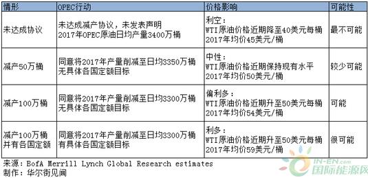 同樣,美銀美林也分析了維也納會議4種可能的結(jié)果(如圖)。