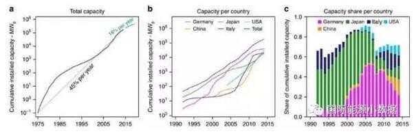 毫無疑問,光伏發(fā)電過程沒有碳排放。但是光伏組件生產(chǎn)過程需要消耗電能,所以光伏也是有碳排放的。荷蘭Utrecht University的學(xué)者Wilfried van Sark博士計算了1975-2015年之間全球生產(chǎn)光伏組件所消耗的能源以及相應(yīng)的碳排放,報告發(fā)表在Nature Communications雜志上。當(dāng)然,光伏組件生產(chǎn)過程的碳排放量取決于光伏的生產(chǎn)時間和地點。由于中國的發(fā)電能源結(jié)構(gòu)以煤為主,所以在中國生產(chǎn)的光伏組件的碳排放要高出歐洲生產(chǎn)的光伏組件一倍。但隨著技術(shù)進(jìn)步和能源結(jié)構(gòu)的改變,光伏組件生產(chǎn)的碳排放不斷下降。