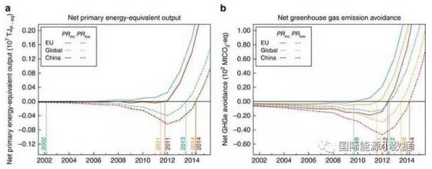 在考慮了光伏組件生產(chǎn)時間與地點的情況下,Wilfried van Sark博士的團(tuán)隊計算得出1975年全球光伏組件在全生命周期內(nèi)(假設(shè)為30年)的碳排放平均為400-500克/千瓦時,而2015年全球平均的光伏組件在全生命周期內(nèi)的碳排放僅為20克/千瓦時。1975年每塊光伏組件需要20年的運行時間才能回收生產(chǎn)該光伏組件所消耗的能量,而2015年光伏組件的能量回收期不到2年?傮w來看,每當(dāng)全球光伏裝機(jī)容量加倍,光伏組件能耗就下降生產(chǎn)就下降大約12%,碳排放下降17-24%。
