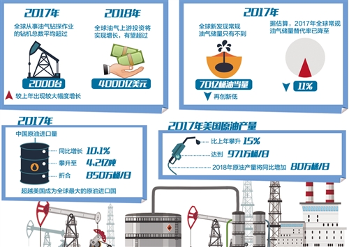 2014年油價(jià)下跌以來(lái),為應(yīng)對(duì)低油價(jià),全球主要石油公司普遍采取向核心業(yè)務(wù)聚焦策略,大幅削減投資,作業(yè)鉆井量明顯下降。2017年隨著油價(jià)逐漸回升,全球油氣勘探走出低谷,鉆機(jī)作業(yè)量“止跌回升”。統(tǒng)計(jì)顯示,去年全球從事油氣鉆探作業(yè)的鉆機(jī)總數(shù)平均超過(guò)2000臺(tái),較上年出現(xiàn)較大幅度增長(zhǎng)。2017年美國(guó)頁(yè)巖油氣并購(gòu)金額達(dá)到220億美元。勘探工作量和并購(gòu)金額的增長(zhǎng),表明全球油氣勘探迎來(lái)了春天。業(yè)內(nèi)預(yù)計(jì),2018年全球油氣上游投資將實(shí)現(xiàn)增長(zhǎng),有望超過(guò)4000億美元。