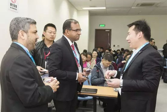 cippe2017中東石油專場(chǎng)阿曼BGI公司首席執(zhí)行官Hemant Murkoth先生(中)與參會(huì)嘉賓進(jìn)行業(yè)務(wù)交流